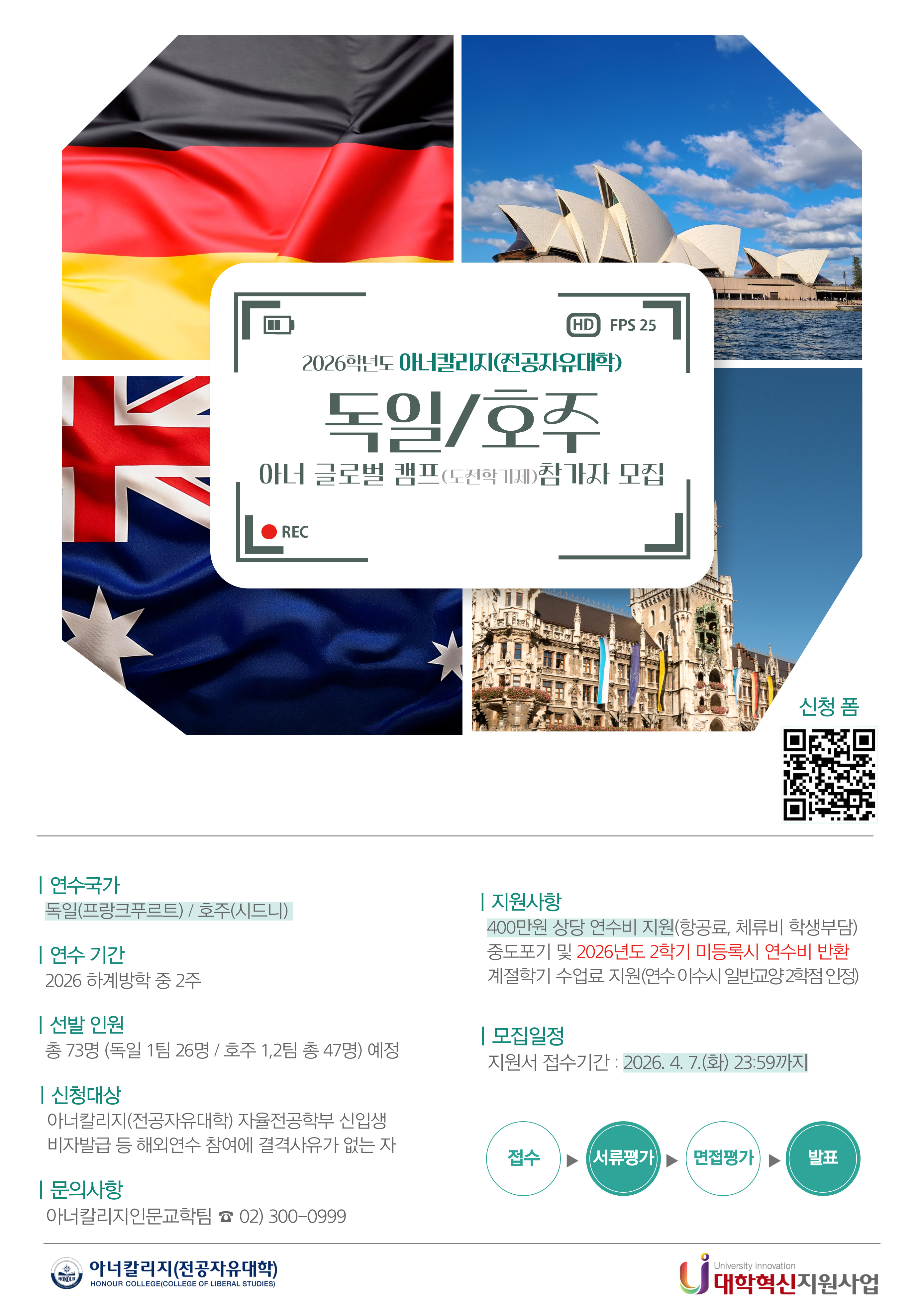 2026학년도 아너칼리지(전공자유대학) 아너 글로벌 캠프(도전학기제) 참가자 모집 안내